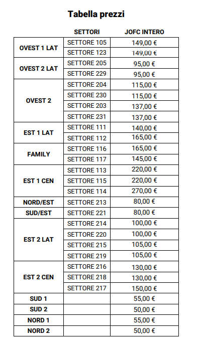 - Per le partite importanti si consiglia di non scegliere curva, poiché la disponibilità è molto limitata, soprattutto nella fase First Minute.