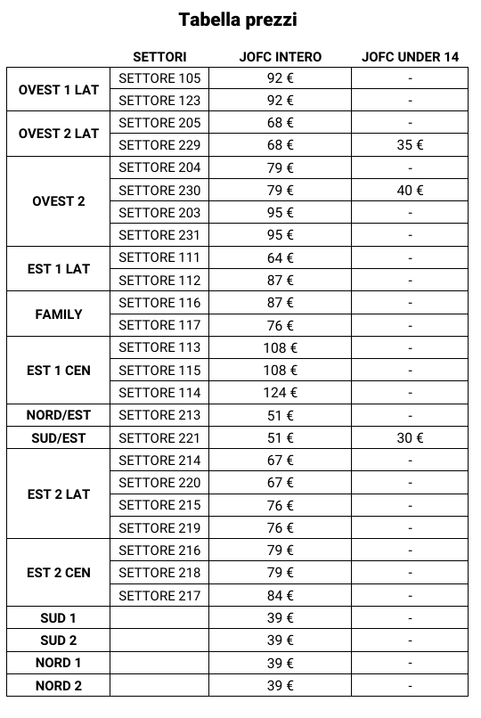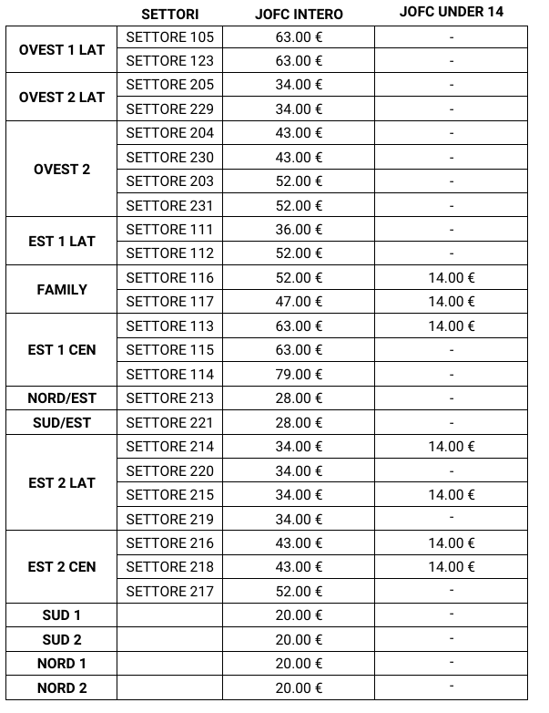 TABELLA PREZZZI JUVE CREMONESE