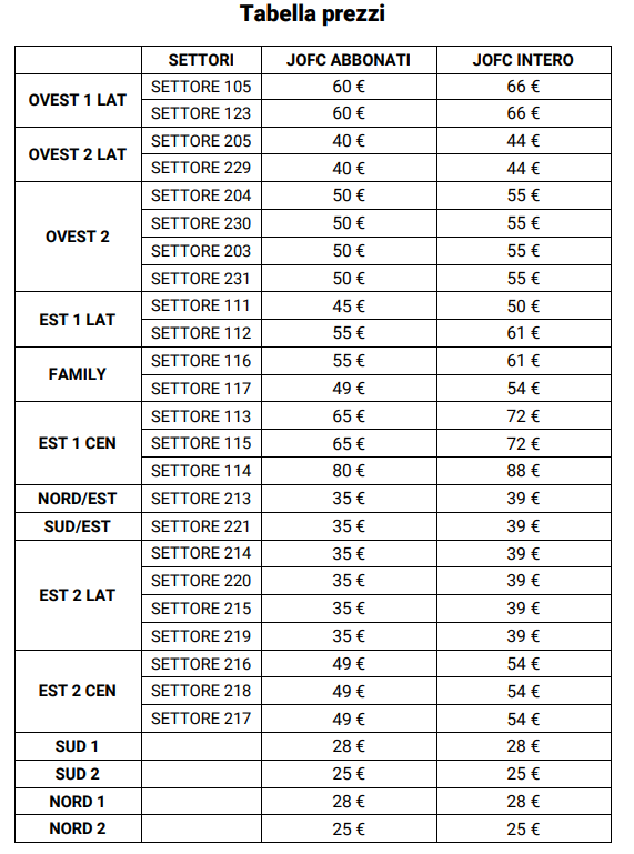 PER LA TRASFERTA IL PREZZO DEL BIGLIETTO è €70 SETTORE OSPITI